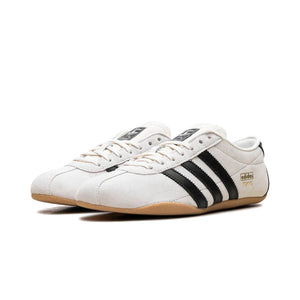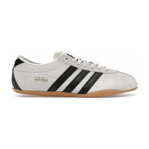 The adidas Tokyo Off White Black presents a refined fusion of heritage running style and modern minimalist design. Its upper combines soft off-white mesh and smooth synthetic overlays that create a lightweight yet supportive structure, contrasted by deep black Three Stripes that bring sharp definition to the silhouette. The low-cut profile allows natural ankle movement, while the padded collar and tongue enhance step-in comfort. A textured midsole inspired by retro track shoes delivers responsive cushioning, supported by a durable rubber outsole for dependable traction on varied surfaces. Subtle adidas branding on the tongue and heel tab maintains the sleek aesthetic, resulting in a shoe that feels effortlessly versatile—ideal for everyday wear while echoing the spirit of classic athletic craftsmanship.