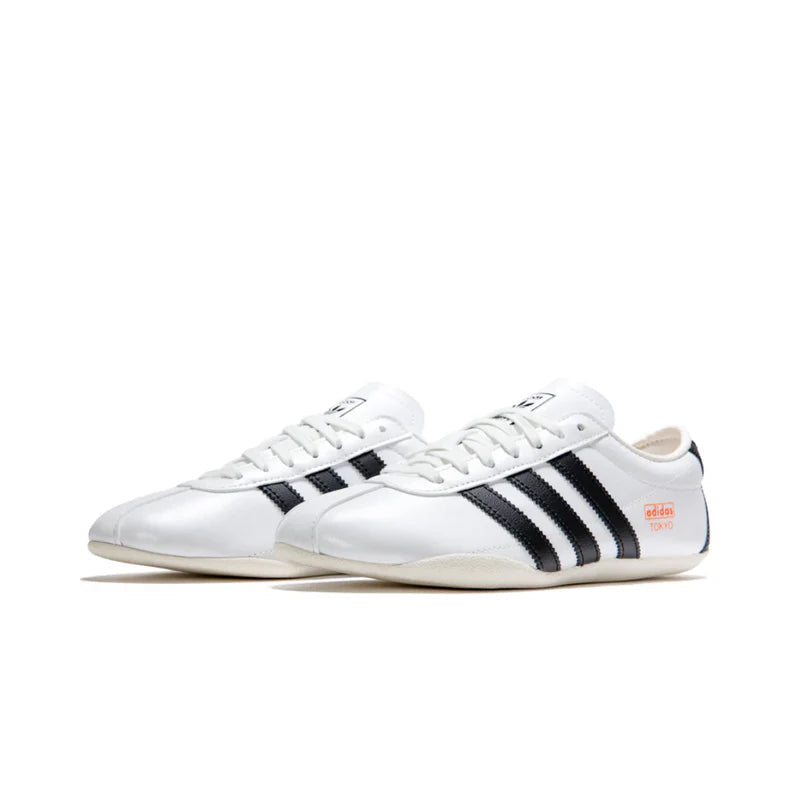 The adidas Tokyo Zero Metallic Core Black (W) delivers a sharp, fashion-forward take on vintage track style, built with a sleek black upper that mixes smooth leather and soft suede for a layered, premium feel. Metallic accents cut through the dark base with a subtle sheen, adding contrast and depth while keeping the overall look refined and understated. The low-profile silhouette stays true to classic Tokyo heritage, offering a close-to-the-ground feel that enhances everyday comfort and effortless styling. A lightly cushioned midsole supports all-day wear, while the durable rubber outsole provides dependable grip and a clean finish, making this pair an easy balance of retro inspiration and modern edge.