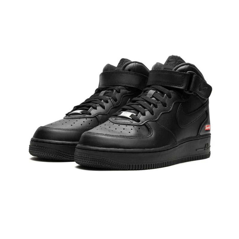 The Nike Air Force 1 Mid Supreme Black is a premium, black-colored version of the classic Air Force 1 Mid, featuring the exclusive Supreme branding. Its sleek design and high-quality materials make it a popular and coveted sneaker among collectors