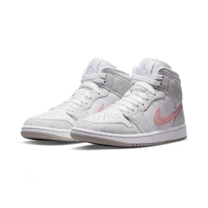 The Jordan 1 Mid SE Light Iron Ore (W) offers a refined and feminine twist on the classic silhouette, combining soft hues with premium craftsmanship. The upper features a mix of smooth and tumbled leather panels in Light Iron Ore, Neutral Grey, and White, creating a subtle layered contrast. A slightly textured finish on the overlays adds depth, while the signature perforated toe box maintains breathability. The Swoosh and collar panels stand out in a gentle grey tone, complemented by crisp white laces and a matching midsole for a clean finish. Underfoot, the rubber outsole provides reliable traction and durability, while the cushioned Air-Sole unit ensures everyday comfort. Subtle branding on the tongue and ankle Wings logo completes the look, making this pair a versatile staple that blends elegance with the Jordan legacy.