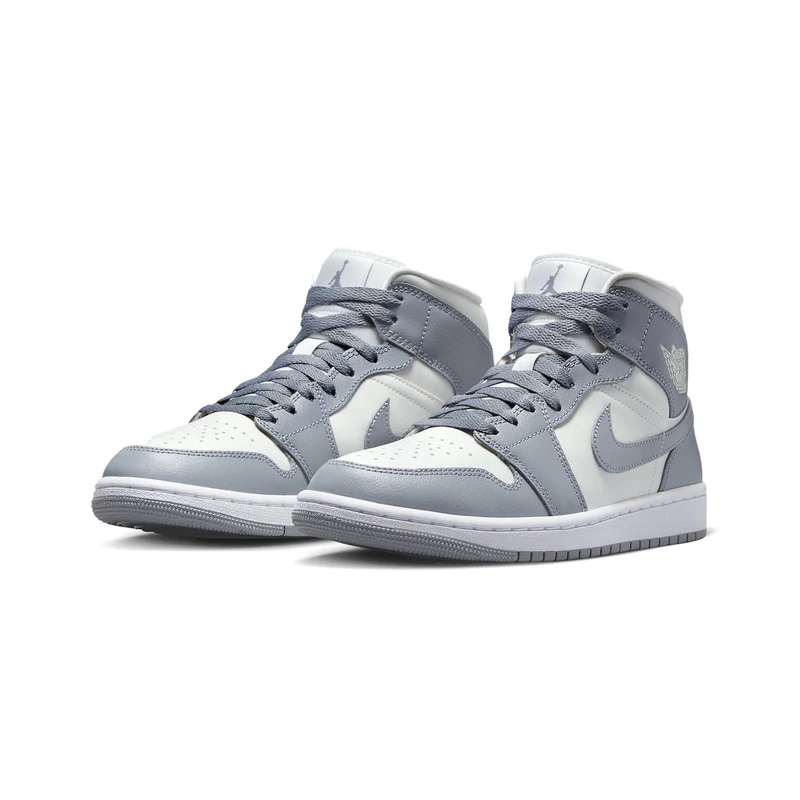 The Air Jordan 1 Mid Stealth W comes in a mixture of three main hues; stealth, white, as well as sail.