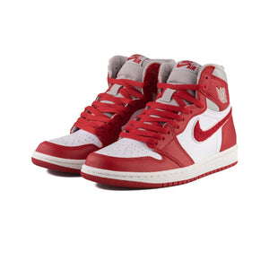 Also known as the Jordan 1 Newstalgia for its nostalgic fabrication, the Air Jordan 1 High Varsity Red (Women's) features a white smooth leather upper with red leather overlays, light grey collars, and matching chenille Swooshes. From there, signature woven Nike tongue tags, a corduroy-fabricated tongue, and a Jordan Wings logo atop the color complete the design.