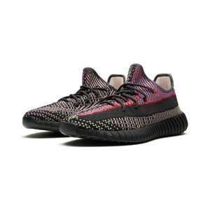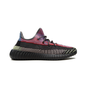 The adidas Yeezy Boost 350 V2 Yecheil (Non-Reflective) showcases Kanye West’s bold design direction with an intricate mix of color and texture. Crafted from signature Primeknit, the upper features a striking multicolor weave that blends shades of black, red, blue, and yellow in an asymmetric pattern, creating a visually dynamic effect. The absence of reflective threads gives the shoe a softer, matte finish while preserving the depth of its layered knit structure. A translucent side stripe adds modern contrast, revealing subtle hints of the underlying pattern. The full-length Boost midsole, encased in a semi-translucent rubber shell, provides responsive cushioning and long-lasting comfort. Finished with a ribbed outsole and pull tab at the heel, this version embodies the Yeezy line’s fusion of technical precision and contemporary streetwear style.