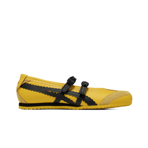 The Onitsuka Tiger Mexico 66 TGRS Kill Bill (Women’s) channels a bold, cinematic energy through the brand’s iconic low-profile silhouette, combining retro track heritage with striking visual contrast. The upper is crafted from smooth, premium leather in a vivid yellow tone, sharply offset by black Tiger stripes that create an instantly recognizable look with strong graphic appeal. Clean paneling and fine stitching highlight the sleek shape, while the slim profile stays true to the original Mexico 66 design language. Underfoot, a lightly cushioned footbed pairs with a flexible sole to deliver comfortable, everyday wear, and the grippy rubber outsole provides reliable traction without adding bulk. Finished with subtle branding and a balanced mix of heritage detailing and standout color execution, this pair feels both nostalgic and confident, making it a statement-driven option that still remains versatile for casual styling.