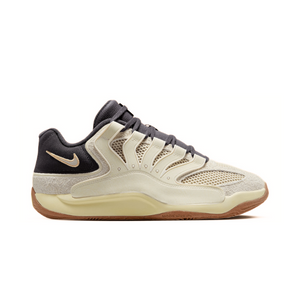 The Nike KD 18 LE Sanddrift presents a clean, premium interpretation of Kevin Durant’s performance silhouette, balancing understated style with on-court functionality. The upper is constructed from lightweight engineered mesh, reinforced with synthetic overlays that provide structure and durability while maintaining breathability. The Sanddrift colorway delivers a soft, neutral tone that gives the shoe a refined, almost lifestyle-inspired look without compromising its athletic edge. Subtle detailing across the panels and branding enhances the sculpted design, while a padded collar and tongue ensure comfortable lockdown during movement. Beneath the foot, the contoured midsole features responsive cushioning designed to absorb impact and support smooth transitions, keeping the ride controlled and agile. A durable rubber outsole with multidirectional traction completes the design, offering dependable grip and stability, making this LE edition a versatile blend of performance and elevated aesthetics.