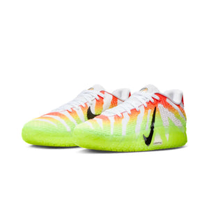 The Nike Ja 3 “Christmas” plays with festive energy through a mix of bold textures and court-ready structure, building its upper with layered synthetics and supportive textiles that wrap the foot in a snug, performance-focused fit. A vibrant holiday palette is broken up by angular paneling and sculpted overlays, while the signature perforations across the midfoot and collar enhance breathability during quick bursts of movement. Ja’s emblem sits prominently on the tongue and heel, pairing with a dynamic Swoosh that cuts across the sidewalls to add motion to the silhouette. Underfoot, the cushioned midsole features the Ja 3’s signature responsive foam setup with targeted stability zones that help absorb impact through landings, and the multi-directional outsole grooves provide the traction needed for rapid changes of pace, making the sneaker feel both agile and playful with its seasonal theme.