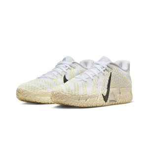 The Nike Ja 3 “Coconut Milk” carries a refined yet performance-driven look, blending Ja Morant’s fast-paced style with a clean lifestyle edge. Its upper comes dressed in a soft coconut milk shade, built from a mix of engineered mesh and synthetic overlays that balance breathability with structure. The design is accented with tonal stitching and subtle contrast details that highlight the sculpted lines of the shoe. A midfoot strap element and dynamic lacing system help lock the foot down, while the padded collar ensures stability during sharp movements. Underfoot, the cushioned foam midsole is paired with a responsive Zoom Air unit to deliver explosive energy return on the court, and the outsole features a grippy traction pattern tailored for quick cuts and aggressive drives. Branding elements, including Ja Morant’s signature logo, complete the shoe with a personalized touch that ties back to his fearless game.