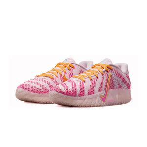 The Nike Ja 3 Valentine’s Day pairs its energetic on-court build with a playful romantic theme, wrapping the upper in a smooth, lightweight mesh that’s drenched in vibrant pink tones and accented with deeper crimson touches along the eyestays, heel, and molded support pieces. Subtle heart-inspired detailing emerges through textured overlays and soft graphic hits, giving the shoe a celebratory feel without overwhelming its streamlined performance shape. The sculpted midsole carries a lively bounce, using responsive cushioning that compresses quickly on impact and springs back to support Ja Morant’s explosive movements, while the TPU sidewalls and stabilizing plate add containment during sharp directional shifts. Underneath, the outsole’s jagged traction pattern grips the court with precision, its translucent finish revealing faint Valentine-themed cues that tie together the shoe’s expressive personality. The combination of airy materials, energetic cushioning, and thematic storytelling results in a design that feels both festive and ready for fast, fluid play.