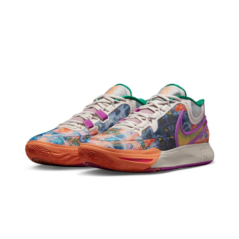 The Nike Kyrie 8 “Circle of Life” presents a bold design that mirrors Kyrie Irving’s creative and spiritual vision, blending performance elements with storytelling details. The upper is built with layered textiles that combine breathable mesh and supportive synthetic overlays, giving the shoe both structure and flexibility. A striking mix of deep orange, warm brown, and golden yellow tones symbolizes the theme of balance and renewal, while intricate embroidery and patterned accents add depth to the design. The midsole integrates responsive Zoom Air cushioning for explosive energy return on the court, complemented by a sculpted heel and padded collar for a locked-in feel. Underfoot, the outsole features a data-driven traction pattern engineered for quick cuts and fluid movement, reflecting Kyrie’s unpredictable play style. Signature branding, including Kyrie’s personal insignia on the tongue and sole, reinforces the personal storytelling, making this edition not only a performance-ready sneaker but also a piece of art rooted in cultural and spiritual identity.