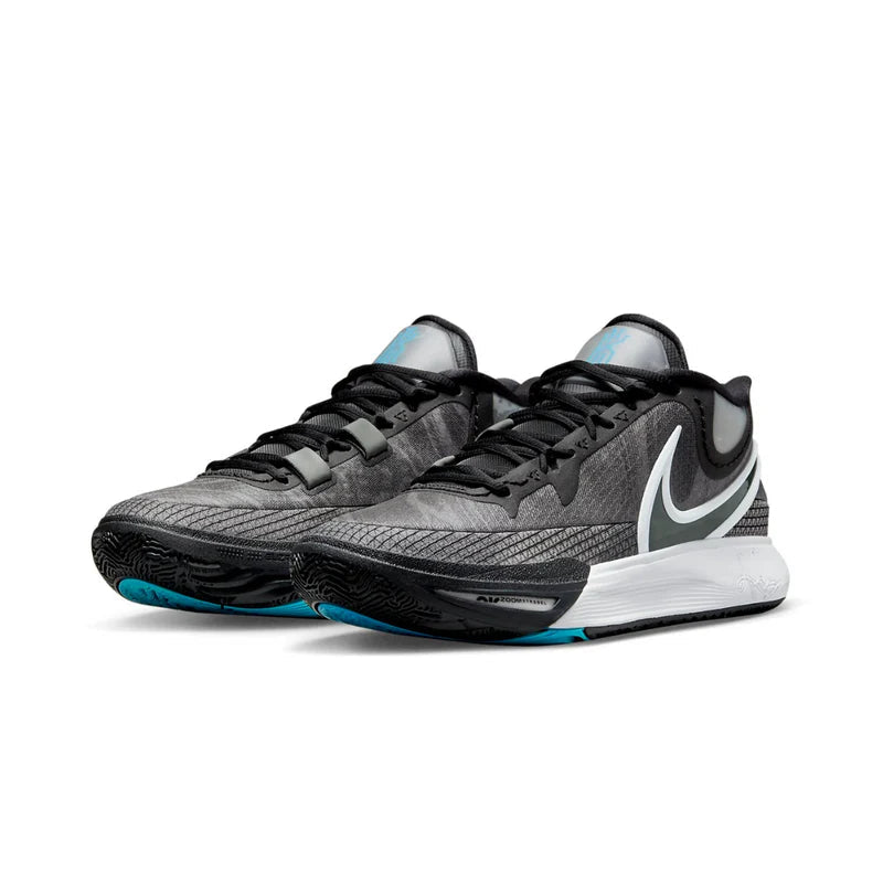 The Nike Kyrie 8 Orca brings a bold monochrome aesthetic inspired by the striking contrast of the ocean’s most iconic predator, balancing clean simplicity with sharp detail. The upper combines breathable engineered mesh with smooth leather and durable synthetic overlays, creating layered textures that feel both modern and performance-driven. Dressed predominantly in black and white, the design emphasizes contrast with a black base accented by crisp white touches on the Swoosh, heel, and midsole, echoing the sleek patterns of an orca. A sculpted midsole with Zoom Air cushioning in the forefoot ensures responsive energy return and quick transitions, while the Turbo Zoom unit is tuned for Kyrie’s trademark agility and multidirectional play. Underfoot, a grippy outsole features a radial traction pattern for enhanced control, supported by curved edges that cater to sharp pivots. Subtle Kyrie branding appears on the tongue and heel, completing a look that merges performance innovation with a clean, timeless colorway that feels both versatile and statement-making.