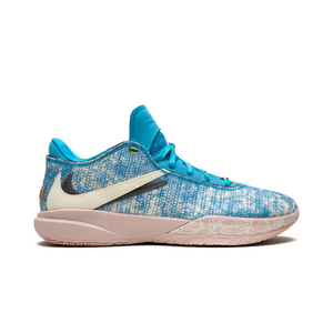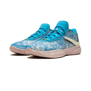 The Nike LeBron 20 “All-Star” celebrates LeBron James’ enduring excellence and influence, blending futuristic design with subtle nods to his storied career. The upper is crafted from a premium knit in light blue and aqua tones, evoking the cool vibrance of the All-Star stage. Layered dual Swooshes—one metallic silver and one icy blue—add depth and movement, while reflective detailing enhances the shoe’s dynamic presence under bright lights. The low-cut silhouette ensures freedom of movement, and the plush collar lining offers a secure, comfortable fit. Underfoot, a full-length Zoom Air unit combined with a forefoot Zoom Turbo delivers responsive cushioning and court-ready bounce, while the carbon fiber shank plate provides structure and stability for explosive transitions. The icy translucent outsole, patterned for multidirectional grip, completes the look with a sleek, polished finish. The LeBron 20 “All-Star” perfectly captures the fusion of style, performance, and legacy—embodying the spirit of an athlete who continues to redefine greatness.