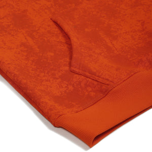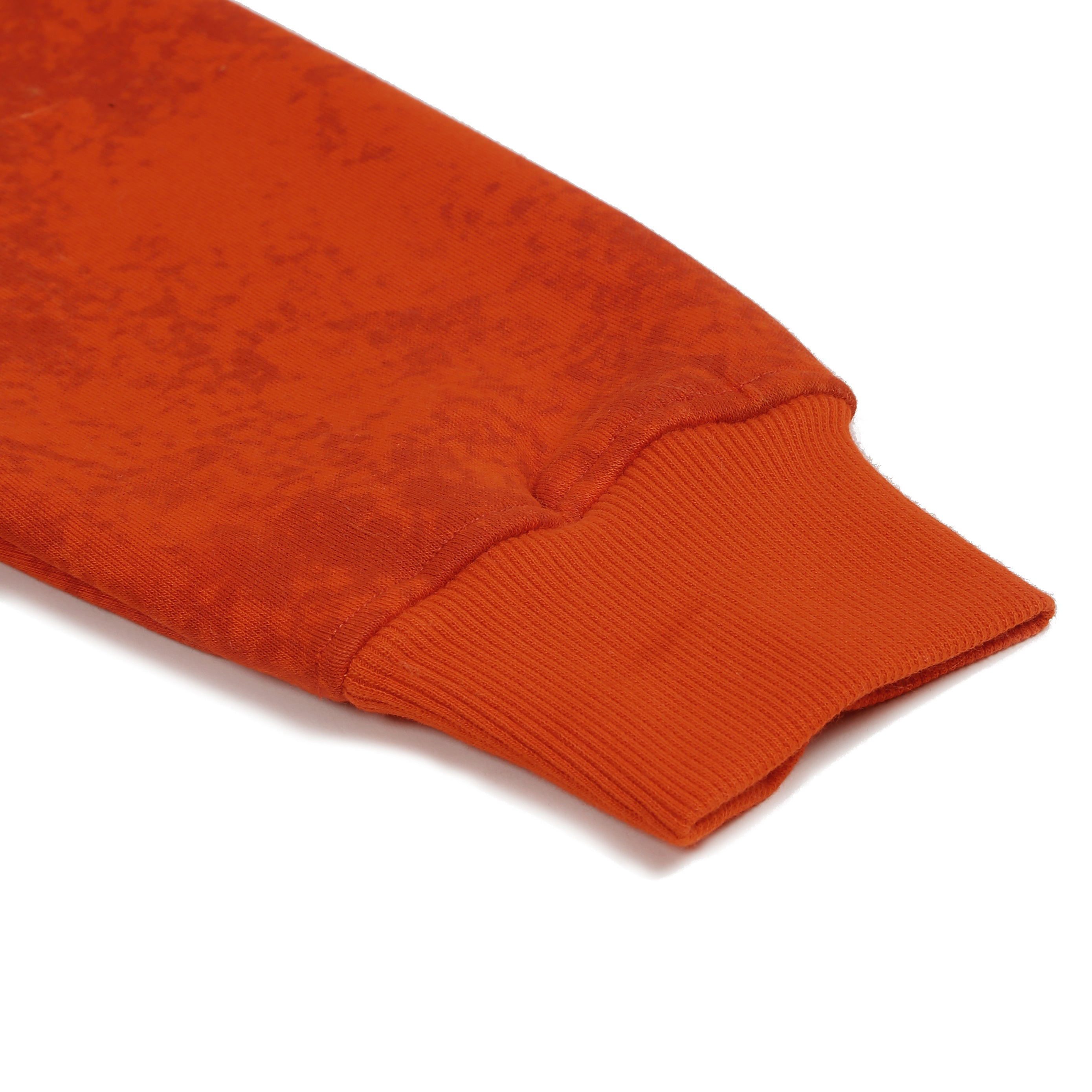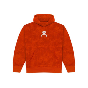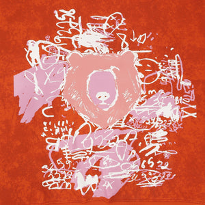 This orange 100% cotton fleece hoodie with a washed effect creates a gradient, color-contrasted finish for a vintage, lived-in appeal. Centered around a bear face drawn from the brand’s identity, it’s surrounded by playful scribble art in white and pink brush strokes, adding a dynamic, artistic flair.