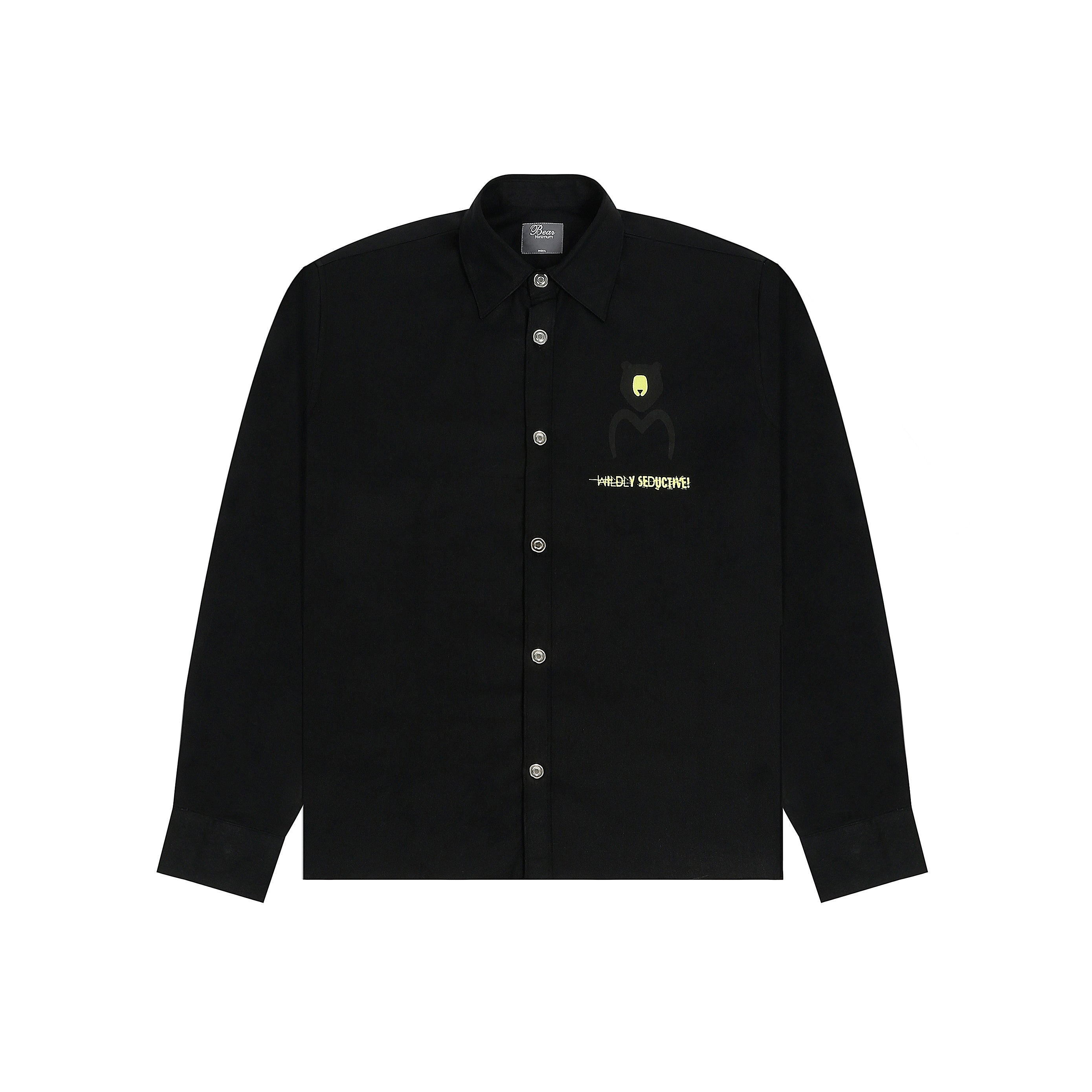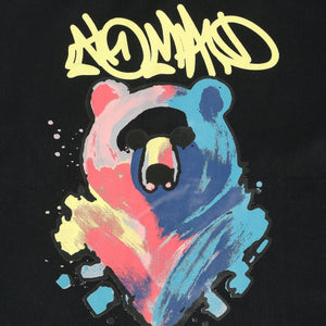 The back boasts a striking bear print in paintbrush effect, outlined in black embroidery for depth and texture, with the bold text “NOMAD” nodding to the brand’s tagline. The front features the Bear Minimal logo alongside the provocative statement “wildly seductive,” making it an ideal layer for adventurous souls seeking both style and substance.