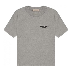 The Fear of God Essentials T-shirt (SS22) Dark Oatmeal is a spring-summer t-shirt produced during the 2022 season and adopts a dark gray shade with minimal branding details contrasting the primary colorway.