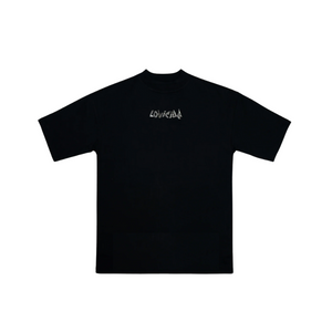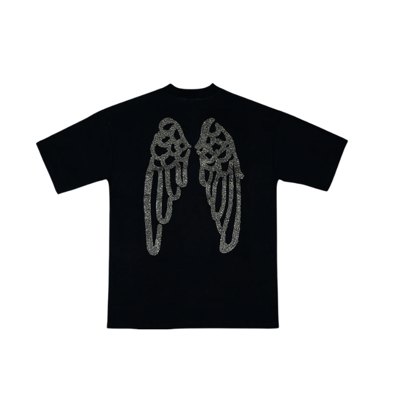 LOVICIDE Rhinestone T-shirt made of 100% cotton featuring round neck with short sleeves and rhinestone appliqués on the back and logo in front.