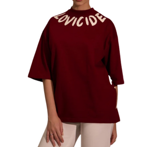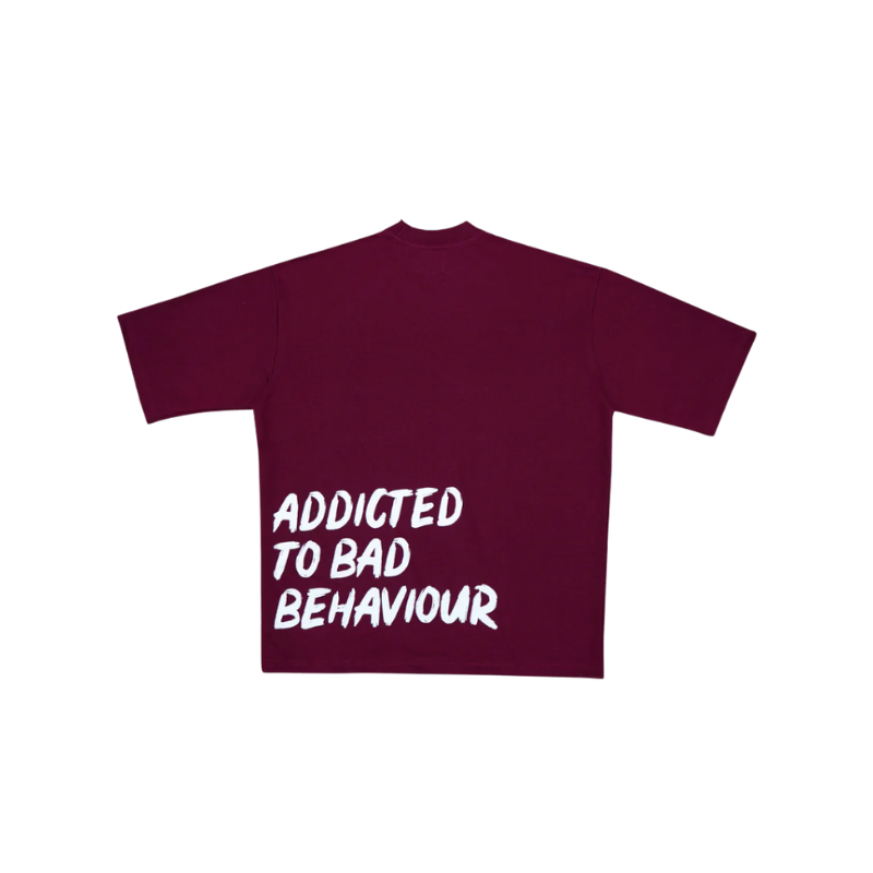 Oversized, unapologetic, and all attitude. This wine unisex 100% cotton t-shirt features bold text that reads "LOVICIDE" across the front and "ADDICTED TO BAD BEHAVIOUR" splashed on the back.