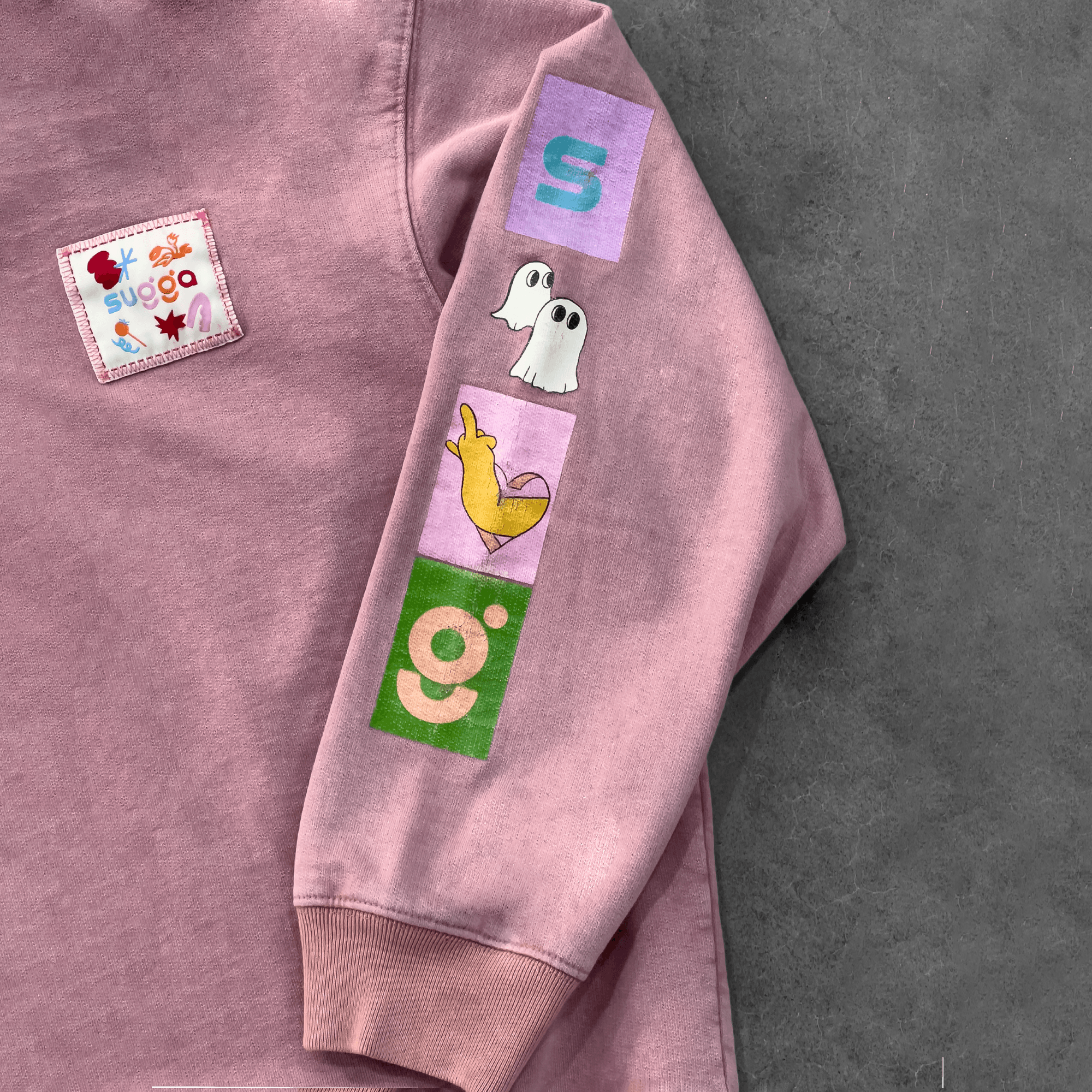 Ribbed collar, cuffs and bottom. Printed sleeve. Sugga matrix printed inside hoodie. Acid Washed. Cracked Print Material : 100% Cotton Colour : Salmon