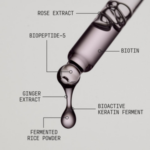 Water/Eau/Aqua, Propandiol, Butylene Glycol, Glycerin, Acetyl Tetrapeptide-3, Biotinoyl Tripeptide-1, Lactobacillus/Honey/Keratin Ferment, Saccharomyces/Rice Ferment Filtrate, Biotin, Rosa Centifolia Flower Extract, Zingiber Officinale (Ginger) Root Extract, Fragrance/Parfum, and other supporting ingredients.