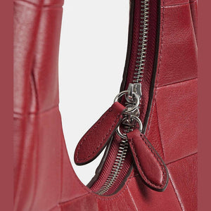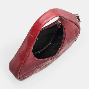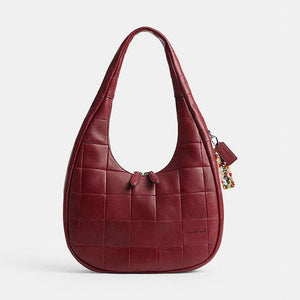The Coach Alter/Ego Crescent Shoulder Bag in Checkerboard Upcrafted Leather Dark Ruby combines sustainable craftsmanship with contemporary design. Its crescent silhouette offers an elegant yet practical style, while the checkerboard upcrafted leather presents a refined texture and rich dark ruby hue, making each piece unique. This shoulder bag is ideal for those seeking an eco-conscious accessory that elevates everyday outfits with expert craftsmanship and timeless appeal.