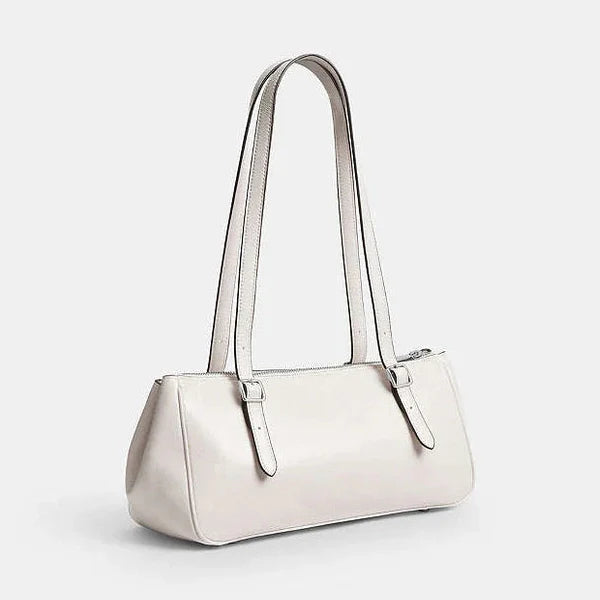 The Coach Asher Shoulder Bag in glazed leather features a refined silver-chalk color that highlights its sleek, polished surface. Designed with a structured shape and an adjustable shoulder strap, this bag ensures comfortable, versatile wear. Its thoughtfully organized interior offers practical storage with a secure closure, making it perfect for both everyday carry and elegant occasions. This piece exemplifies Coach’s dedication to craftsmanship and contemporary