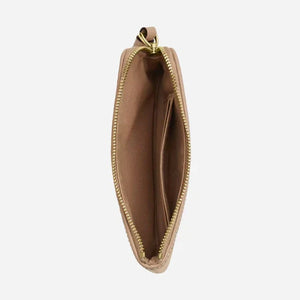 The COACH Corner Zip Wristlet in Dark Natural Multi features signature canvas paired with refined leather accents for a sophisticated look. Designed with a secure zip closure and a wrist strap, it offers convenient, hands-free carrying of your essentials. Its compact design and iconic pattern make it a versatile accessory that blends timeless style with everyday functionality.