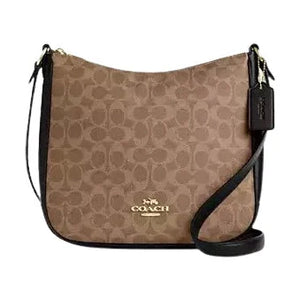 The Coach Ellie File Bag in Signature Canvas combines timeless style with practical design. Crafted from durable signature canvas accented with gold, tan, and black tones, it offers a sophisticated look for everyday use. Its structured silhouette provides organized storage, making it ideal for carrying essentials or documents securely. Perfect for professionals seeking a blend of elegance and functionality.