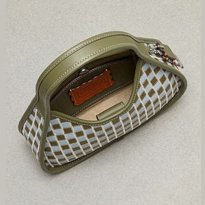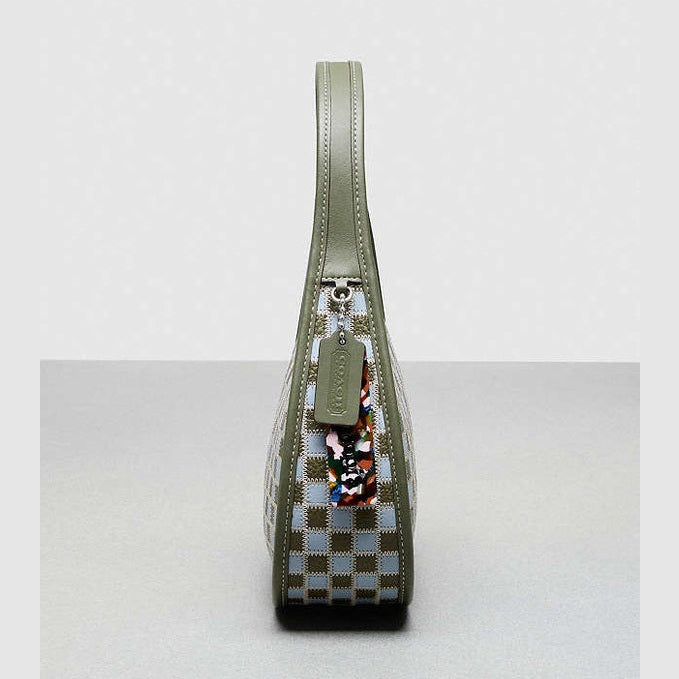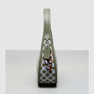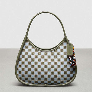The Coach Ergo Bag in Checkerboard Upcrafted Leather Ice Blue-Army Blue combines sustainable design with expert craftsmanship. Featuring upcycled leather in a subtle checkerboard pattern, its cool ice blue and muted army blue tones create a contemporary and versatile look. The ergonomic silhouette ensures comfortable wear while maintaining a refined, structured presence—ideal for those who value both eco-conscious materials and polished aesthetics.