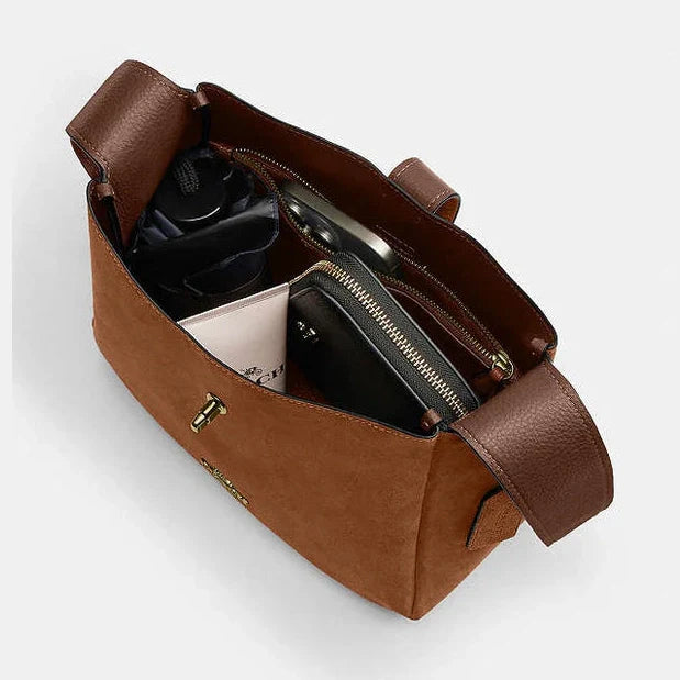 Coach Hadley Convertible Crossbody Bag Suede-Gold-Sienna