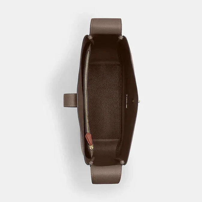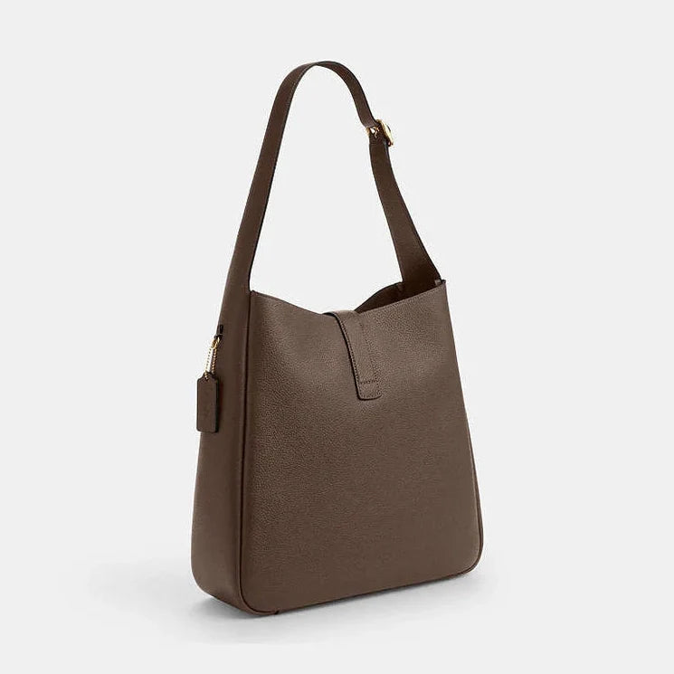 The Coach Hadley Large Shoulder Bag in Pebbled Leather features a sophisticated Dark Stone hue complemented by elegant gold-tone hardware. Its structured design and generous interior offer ample space for essentials, while the durable pebbled leather ensures long-lasting wear. This bag seamlessly blends timeless style with practical function, making it an ideal accessory for everyday use or refined occasions.