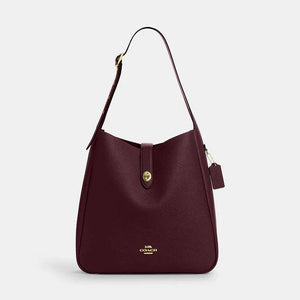 The Coach Hadley Large Shoulder Bag in Pebbled Leather showcases a rich Dark Wine color with a refined texture for lasting appeal. Featuring ample interior space and sturdy construction, this bag combines elegance with practicality. Gold-tone accents accentuate its sophisticated design, making it a versatile choice for both professional settings and everyday wear.