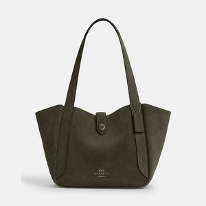 The Coach Hadley Turnlock Tote Bag in suede features a rich Army Green shade paired with a signature turnlock closure for secure access. Its spacious interior accommodates daily essentials effortlessly, while the soft suede offers an elevated tactile experience. Combining functionality with understated luxury, this tote is perfect for those seeking a refined, versatile accessory.