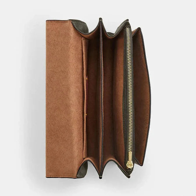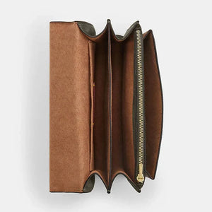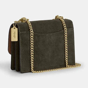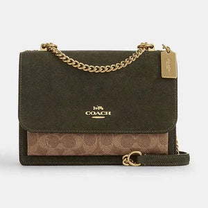 The Coach Klare Crossbody Bag combines signature canvas with suede in an Army Green and Tan colorway, offering a refined yet casual aesthetic. Its compact design includes an adjustable strap for hands-free convenience and organized storage for daily essentials. With quality materials and expert craftsmanship, this bag delivers both style and practicality for versatile wear.