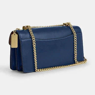 Made from luxurious calf leather in a deep blue shade, the Coach Klare Envelope Crossbody Bag combines elegance with functional design. Featuring a refined envelope silhouette and gold-tone hardware, this bag offers a sophisticated look for any occasion. The adjustable crossbody strap provides comfort and convenience, while the compact interior securely holds your essentials, making it a perfect accessory for both day and night use.