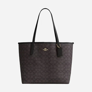 Coach Large City Tote Bag In Maxi Signature Canvas Signature Canvas-Gold-Walnut-Black