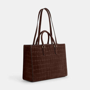 Coach Maggie Tote Bag Embossed Crocodile-Gold-Maple
