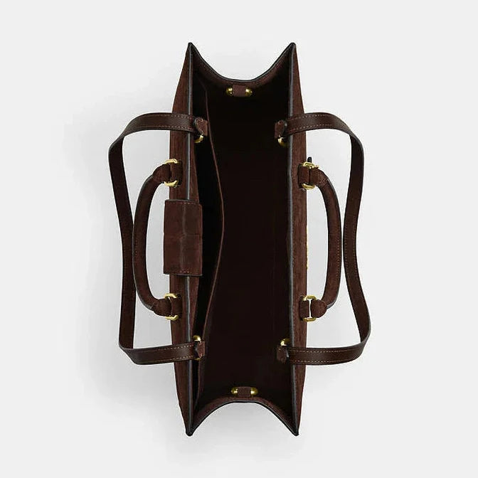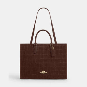 Discover the perfect blend of luxury and functionality with the Coach Maggie Tote Bag in embossed crocodile leather. The rich gold maple color adds a touch of warmth and elegance, while the spacious interior ensures you carry all your essentials with ease. Crafted to elevate your style, this tote is ideal for both everyday use and special occasions, making a statement wherever you go.