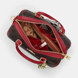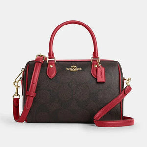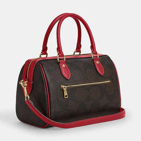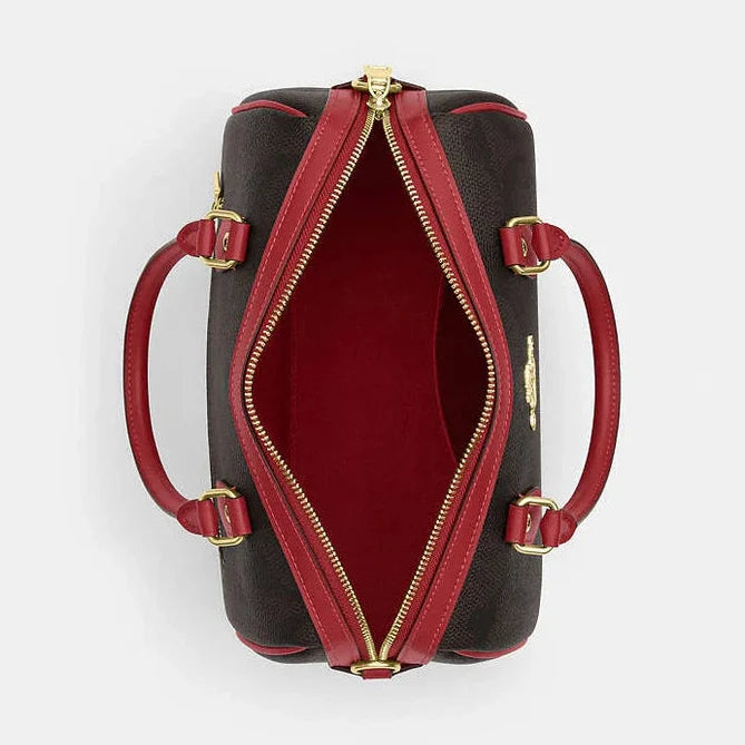 Coach Rowan Satchel Bag In Maxi Signature Canvas Signature Canvas-Im-Walnut-True Red