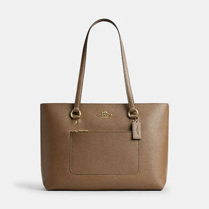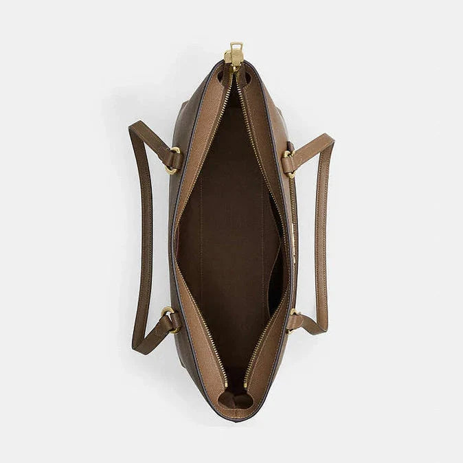 Crafted from premium crossgrain leather, the Coach Station Tote Bag in Gold-Dark Stone offers a sophisticated blend of durability and style. Its thoughtfully designed spacious interior accommodates daily essentials with ease, while the sleek silhouette adds a refined touch to professional or casual ensembles. This tote is a versatile accessory that elevates your look while providing practical functionality.
