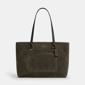 Home COACH Coach Station Tote Bag Suede-Qb-Army Green