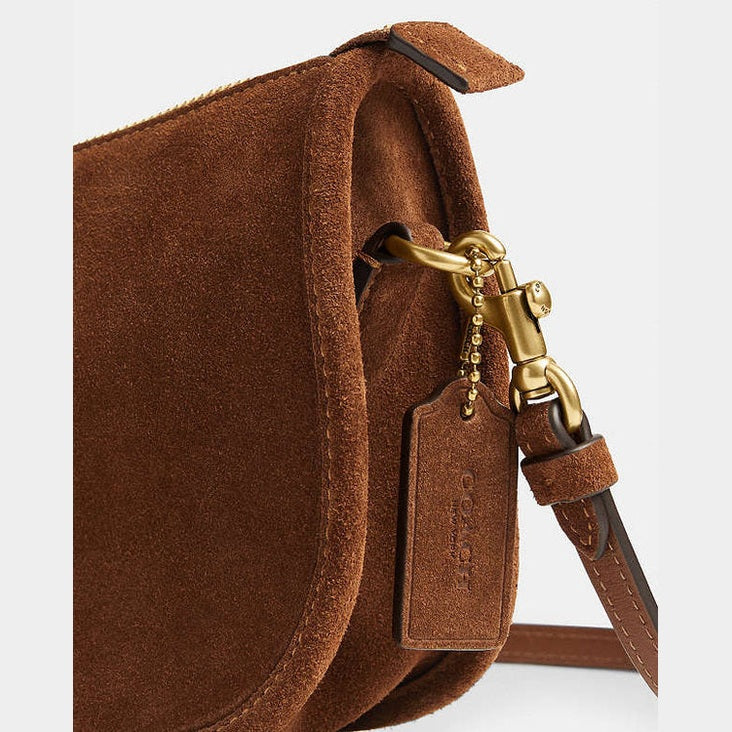 The Coach Waverly Bag in Suede Brass-Warm Brown showcases luxurious suede in a rich warm brown hue, contrasted with elegant brass hardware for a refined finish. Expertly constructed, this bag offers a soft yet structured design, combining tactile appeal with lasting quality. Its roomy interior and sophisticated styling make it a versatile accessory that complements both casual and formal ensembles.