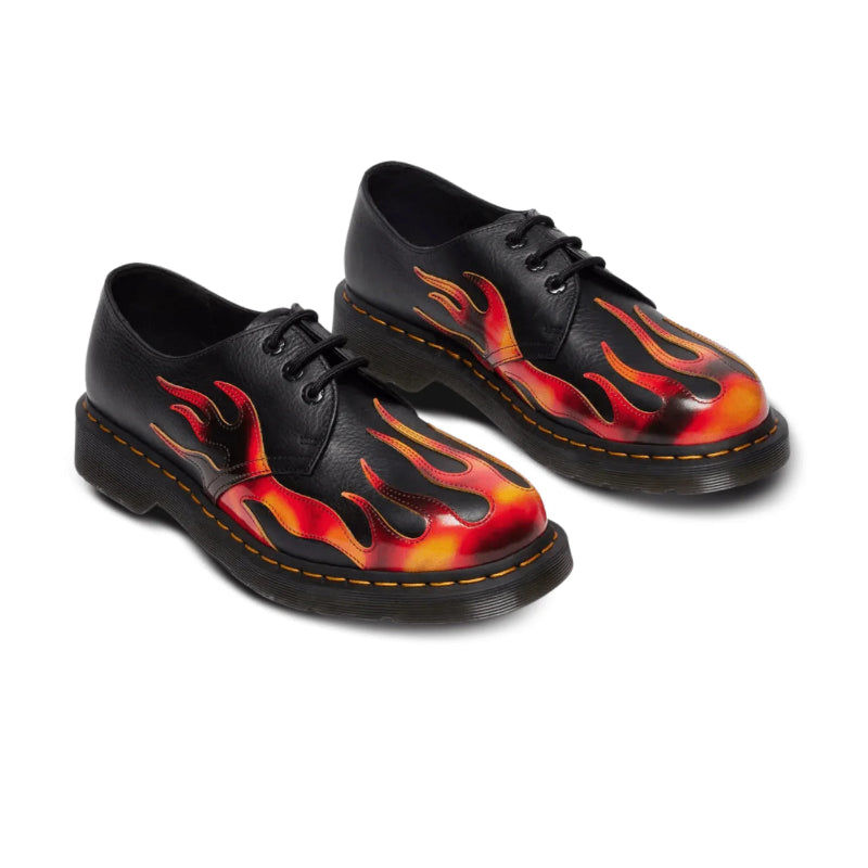 Dr Martens 1461 Flame Arcadia Rub Off Leather Shoes Black Vibrant Red