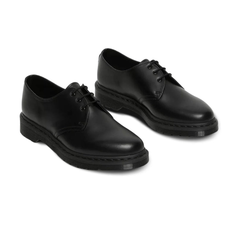 A timeless classic with a modern edge, the Dr. Martens 1461 Mono Smooth Leather Oxford Shoes in Black bring iconic style to every step. Crafted from signature smooth leather, these three-eyelet shoes are built with the brand’s renowned Goodyear-welted construction for durability and comfort that lasts. The all-black mono finish – from the upper to the sole and stitching – delivers a sleek, understated look that pairs effortlessly with both casual and formal outfits. Complete with the cushioned AirWair™ sole, they embody the perfect blend of heritage craftsmanship and everyday wearability.