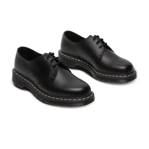 Dr Martens 1461 White Stitch Smooth Leather Lace Up Shoes Black