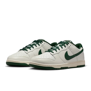 The Nike Dunk Low Retro Sail Fir pairs soft neutrals with rich green contrast for a balanced and fresh look. Sail dominates the base, creating a clean backdrop that highlights the classic panel layout. Fir overlays introduce deep green depth, giving the silhouette character without overwhelming the composition. The low cut shape remains faithful to the Dunk’s original design language.