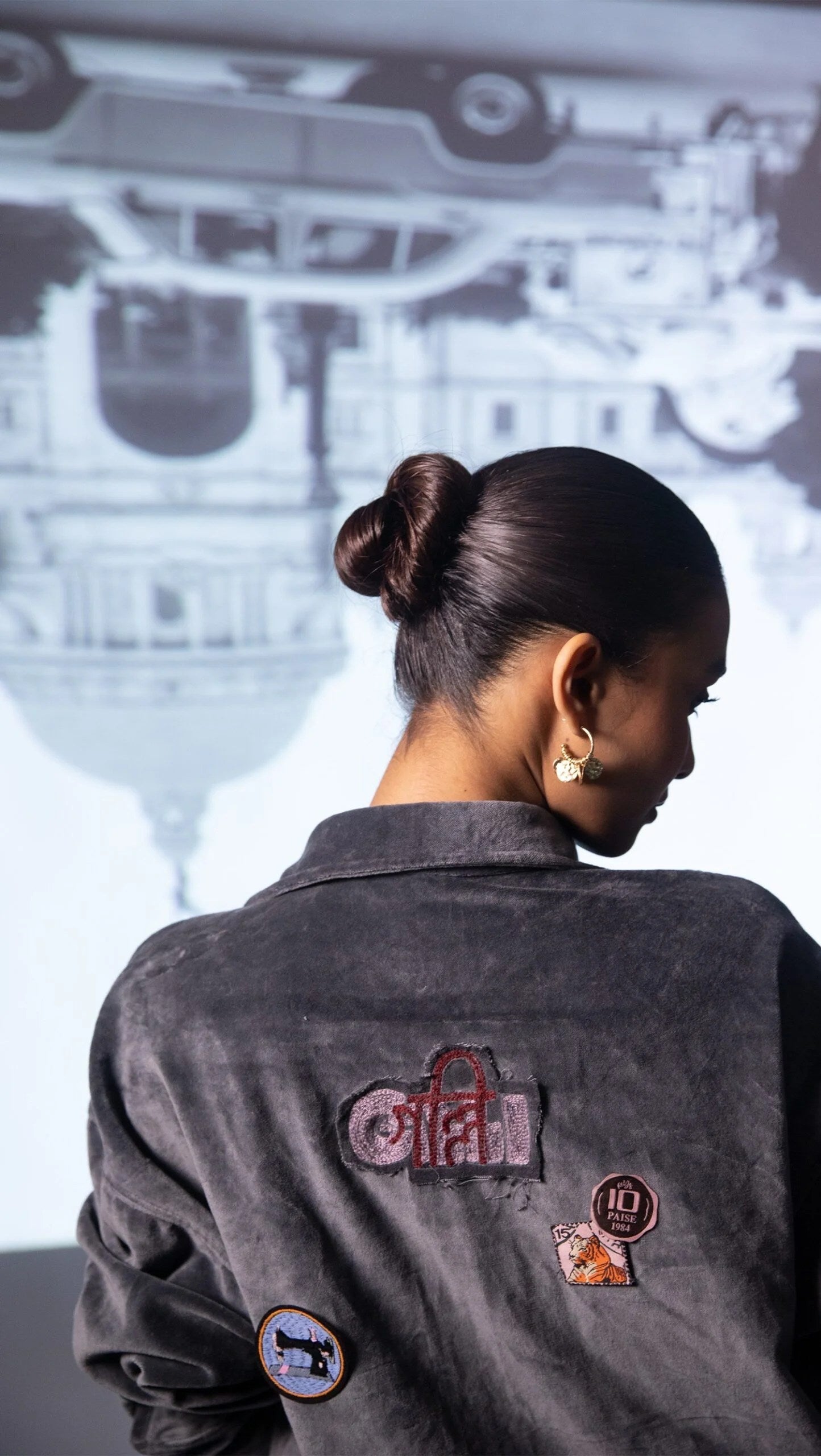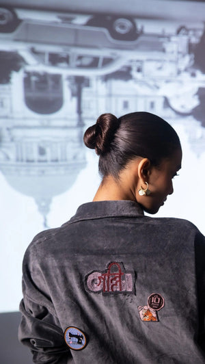 Corduroy fabric. Aari Embroidery. 8 man hours. Language of choice.
