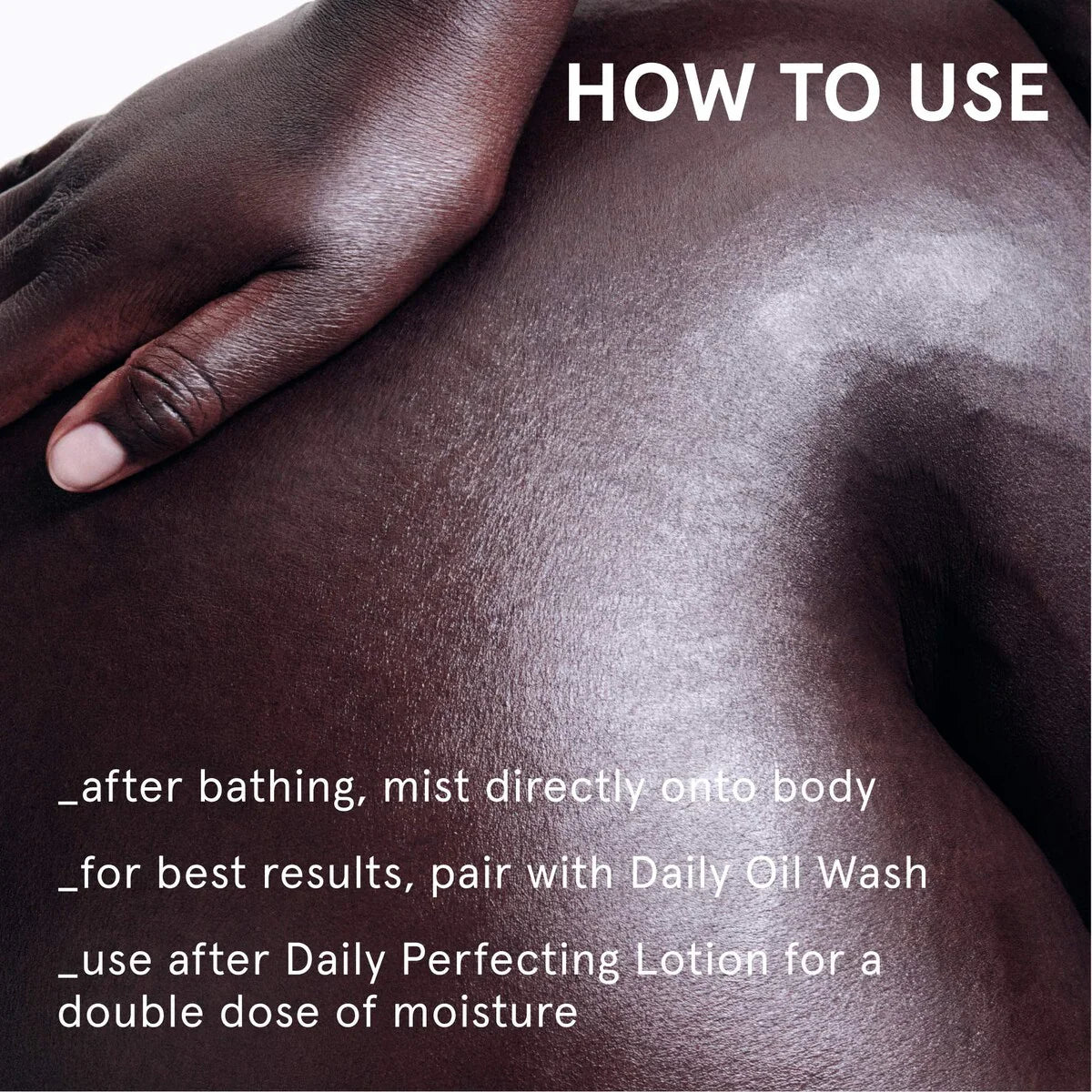 An ultrafine body oil that moisturizes while smoothing and visibly evening skin tone and improving all over radiance.