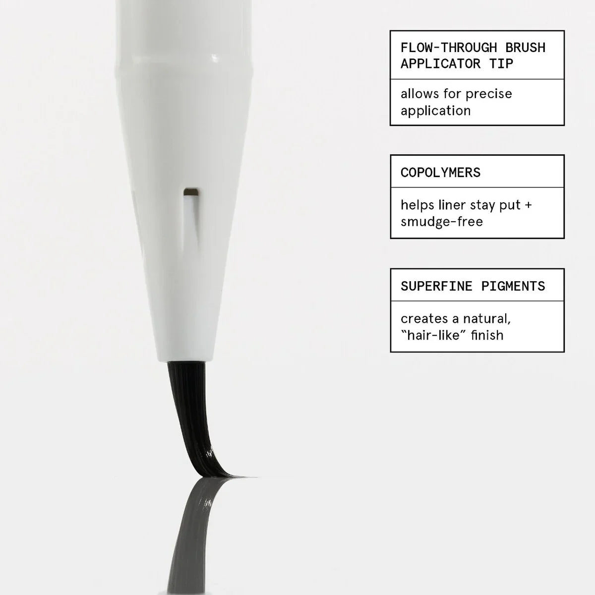 - Flow-Through Brush Applicator Tip: Allows for the creation of hair-like strokes and a natural finish.