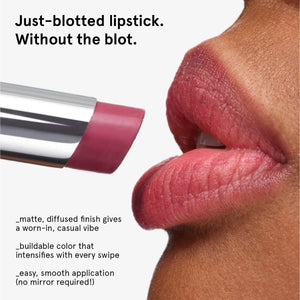 This reformulated fragrance-free sheer-matte lipstick is inspired by makeup artists' lipstick blotting technique, allowing each shade to enhance lips with buildable sheer pigment.