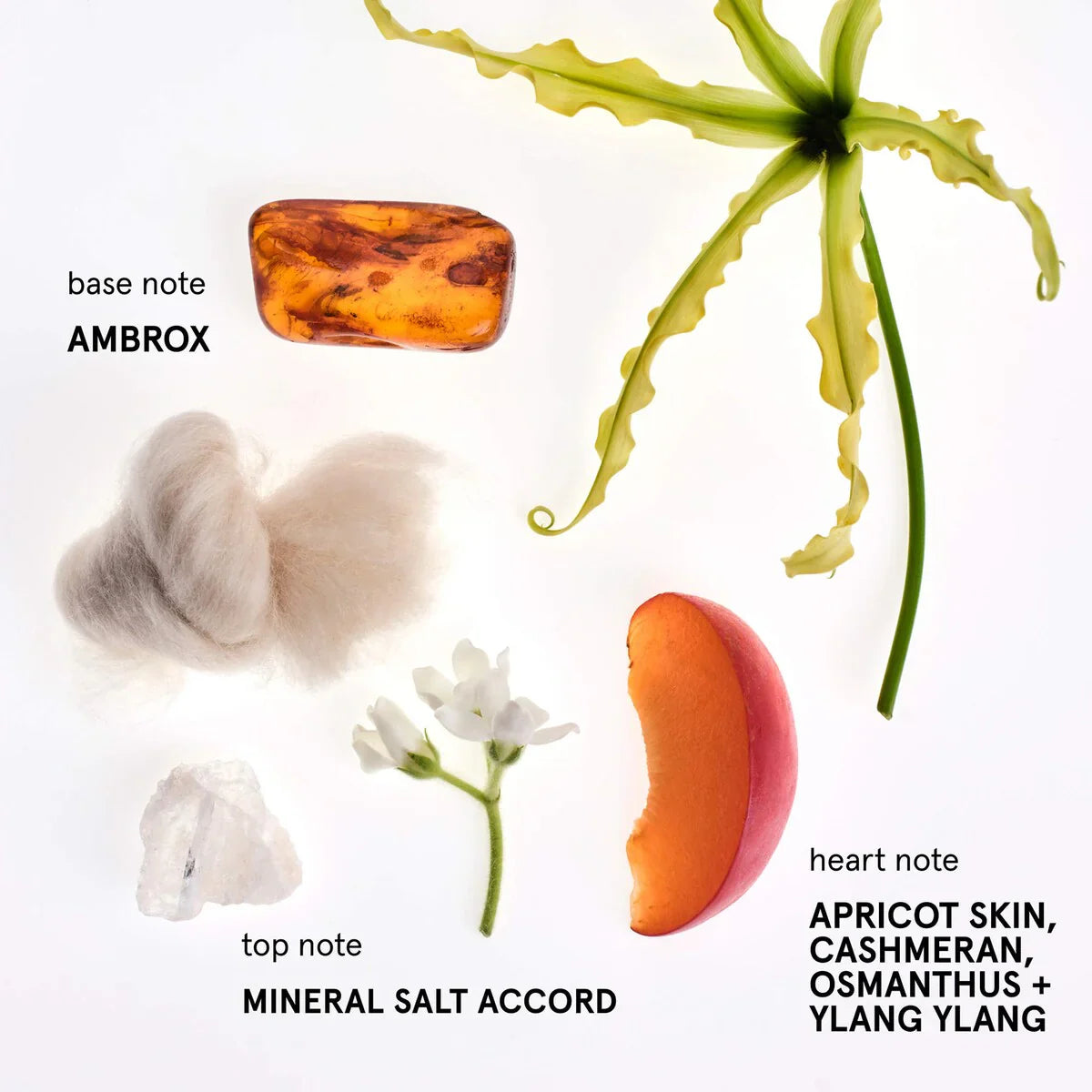 The formula features sparkling pink pepper, earthy iris, and a warm, slightly-sweet base, creating a scent that is creamy, salty, warm, and clean.