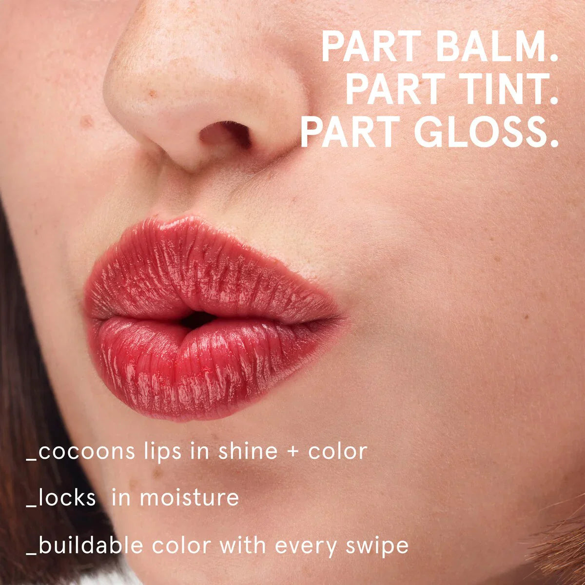 A high-shine lipstick that combines the rich moisture of a balm, the sheen of a gloss, and the buildable color of a lip tint in one easy step, eliminating the need for multiple products.